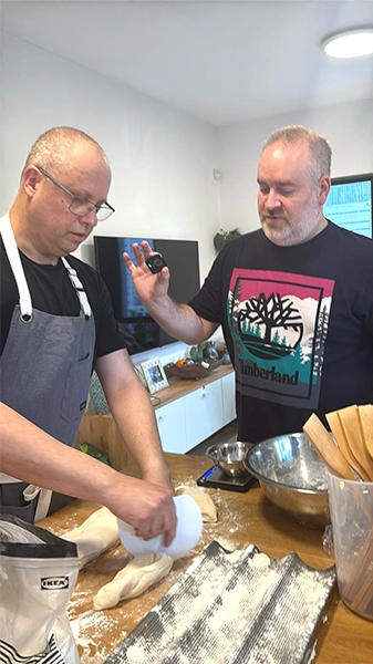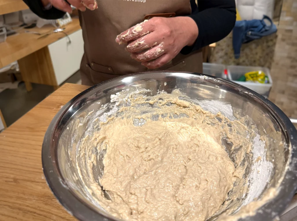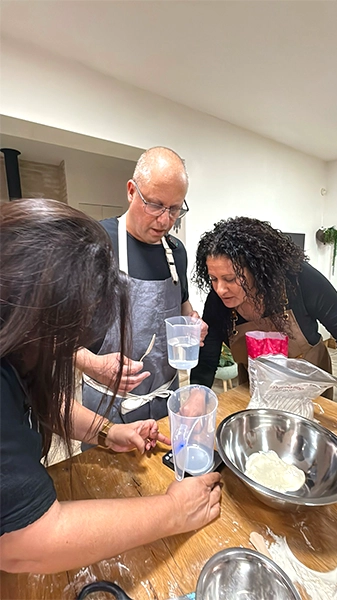 הסדנה היא מעשית לחלוטין. כל משתתף עובד על הבצק האישי שלו – לש, מקפל ומעצב בידיו. לתפיסתי, אי אפשר ללמוד להכין לחם מחמצת אמיתי בלי לגעת בבצק ולהרגיש אותו. השתתפות בכל התהליך מפתחת את הזיכרון החושי והמיומנות הידנית החיוניים להצלחה באפייה ביתית